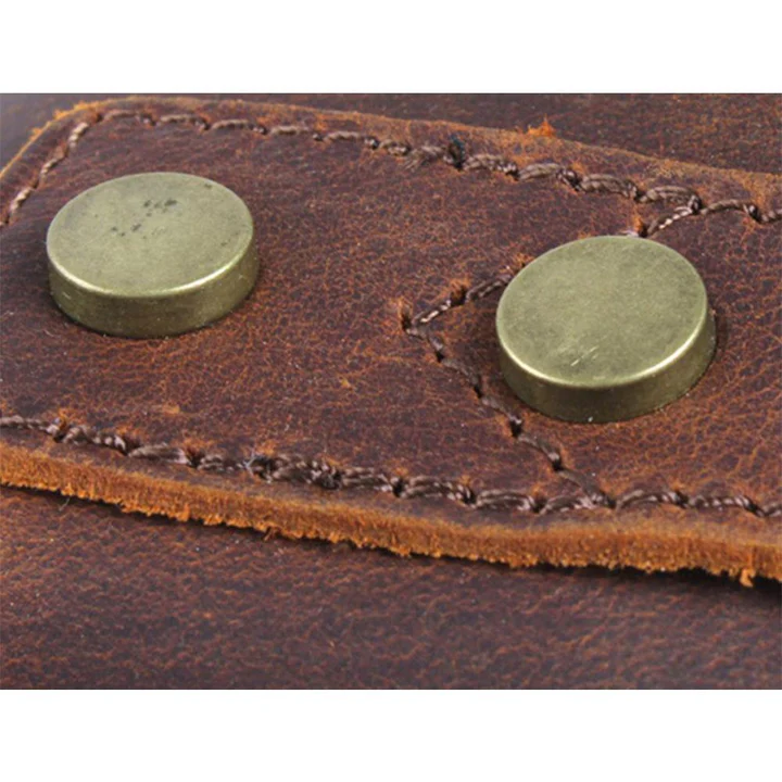 Lona encerada impermeable + cuero natural.